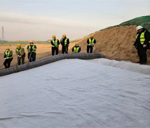 膨潤土防水毯又叫膨潤土墊每平方克重在3000克--6000克之間,屬于重貨因此在鋪設時現場人員在10人左右,材料鋪設后所有人員負責調整相鄰兩卷防水毯搭接30cm-50cm,調整完成后安排一人在搭接重合面撒搭接粉,相鄰兩卷完成后在進行下一卷的鋪設,該兩卷完成后如需回填在鋪設第三卷過程中前面兩卷就可以回填了,形成流水線作業?!?/p> +more
